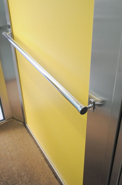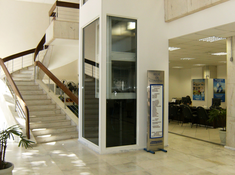Falta de luz e resgate automático O sistema é equipado com componentes eficientes de resgate ao pavimento inferior (usando a força da gravidade), abrindo as portas e liberando os passageiros, dispensando o chamado de um técnico.