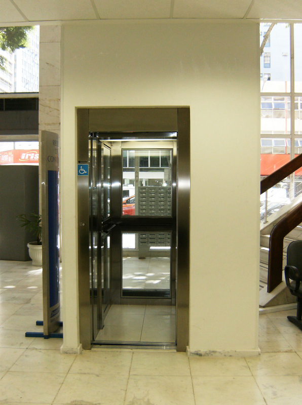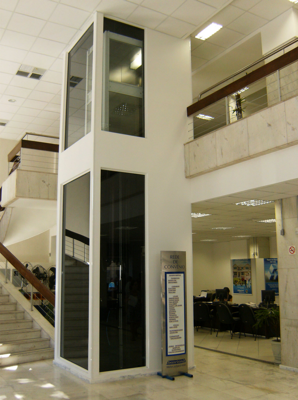 Falta de luz e resgate automático O sistema é equipado com componentes eficientes de resgate ao pavimento inferior (usando a força da gravidade), abrindo as portas e liberando os passageiros, dispensando o chamado de um técnico.